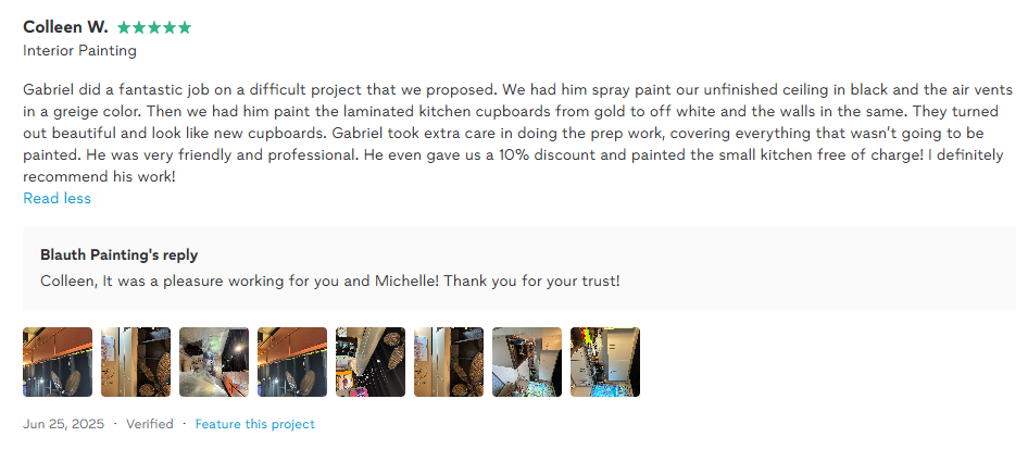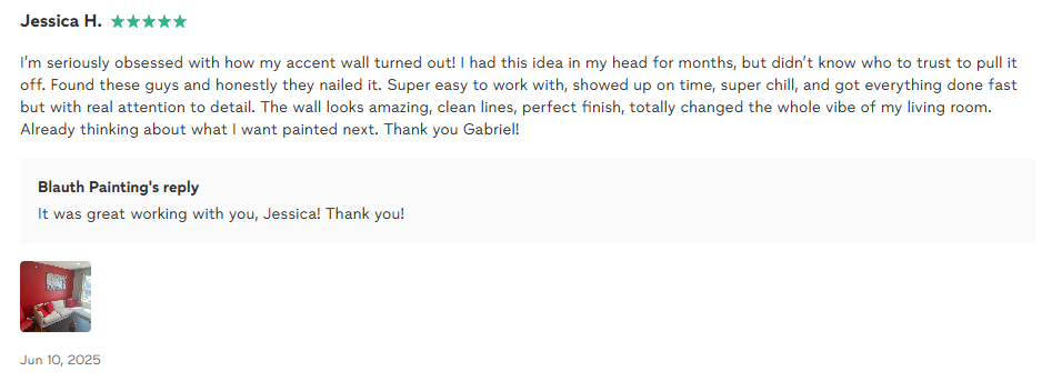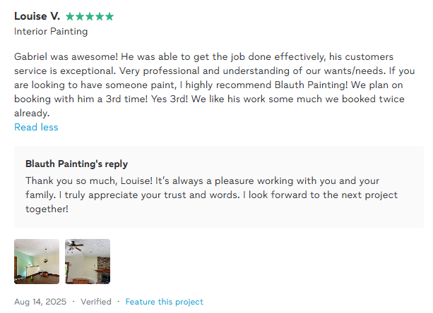 We take on limited projects to ensure full focus. Spots fill up 2–3 weeks ahead—book now for a clean, stress-free painting experience. Quote in 24h or less.